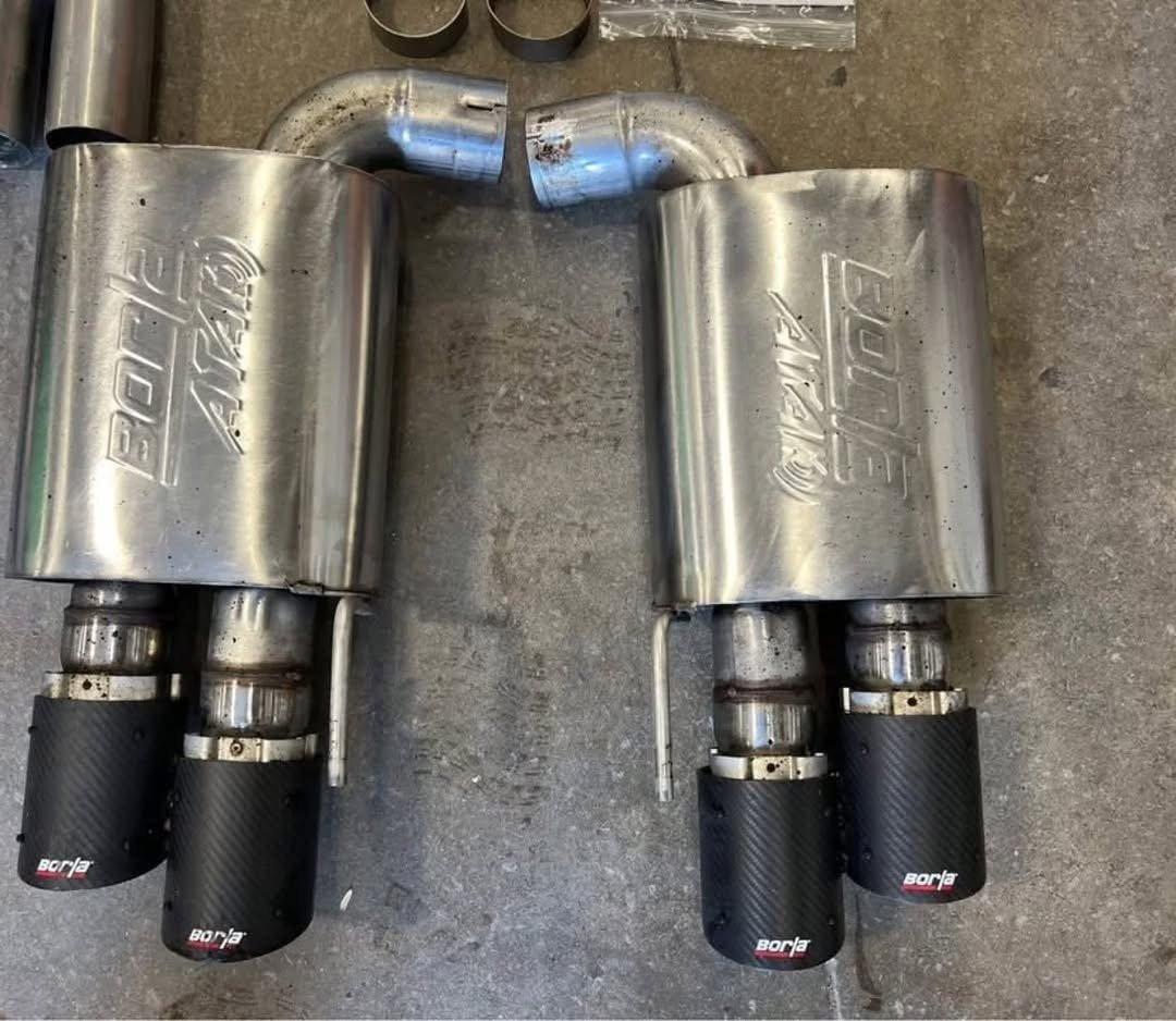 Exhaust with Black Carbon Fiber Tips.\nStill in perfect condition, Mufflers are two years old.